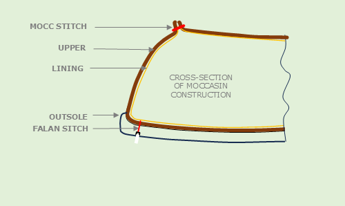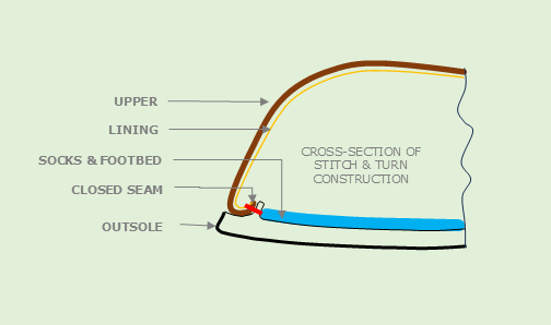- In this method, the upper is stitched to the sole inside out, with the right side of the leather or fabric facing inward.