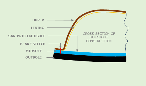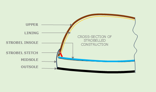 - A Strobeled Board is stitched to the Upper, then glued to the Outsole
