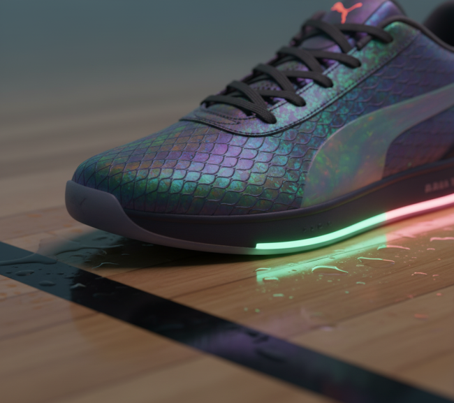 Puma unveils Haliburton’s iridescent signature sneaker with WavePlate tech—targeting $62B Asia footwear market, this on/off-court gem blends style and function in eco-friendly materials.